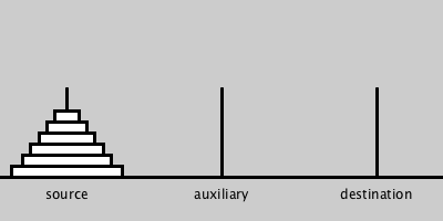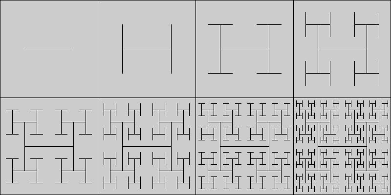 **Recursive functions** # Recursive functions - The body of a function may contain calls to other functions. In fact, the body of a function `f` may contain direct calls to `f` itself. - A function whose body contains at least a direct call to itself is said to be _recursive_. - A function `f` may be _indirectly recursive_ if it does not call `f` itself, but one of the functions `g` that `f` calls directly calls `f` (either directly or indirectly). - When functions `f` and `g` are such that `f` directly calls `g`, and `g` directly calls `f`, we say that `f` and `g` are _mutually recursive_. # An example recursive function - A canonical example of recursive functions is the `factorial` function: ```kotlin fun factorial(n: Int): Int = if (n == 0) 1 else n * factorial(n-1) ``` - There's something to be learned even from this simple example. # Characteristics of recursive functions - Every recursive function must have base case(s) where the function does not call itself. - All recursive calls have to end up at one of the base cases, otherwise the program will get into _infinite recursion_. - Implementation of recursion must be done by the runtime system of the programming language. This usually involves a _stack_ of _activation records_. An activation record is a data structure that keeps track of the local variables and other house-keeping information used by an activated function. - When designing a recursive function, you must not try to follow the recursion. Instead, you must use the _magic view of recursion_ where you assume the function works correctly on smaller cases, and you simply combine the solutions for the smaller cases to make a solution for the larger case. # Tower of Hanoi (ToH) puzzle - You are given 3 pegs and n discs of different sizes. All discs are on the source peg, arranged from top to bottom in order of size from smallest to largest. - You are to find a sequence of moves to put all n discs on the destination peg, using the middle peg as auxillary. - Each move removes the topmost disc from some peg and put it on another peg subject to the condition that a larger disc may not be put on top of a smaller one. - The first image shows the starting position and and the second one shows the ending position.   # ToH solution - This problem can be solved by thinking recursively. - An optimal solution takes the fewest number of moves possible. - What is this number as a function of the given number of discs? - Can you find an optimal solution for every given number of discs? # ToH solution in Kotlin - Here is one possible solution to the ToH problem. ```kotlin /* * Prints instructions to optimally move n discs from peg `src` * to peg `des` using peg `aux` as the auxillary peg. */ fun hanoi(n: Int, src: Int, aux: Int, des: Int) { if (n == 1) println("move top disc from peg $src to peg $des") else { hanoi(n-1, src, des, aux) println("move top disc from peg $src to peg $des") hanoi(n-1, aux, src, des) } } fun main(args: Array< String >) { val n = args[0].toInt() if (n > 0) hanoi(n, 1, 2, 3) } ``` - **Exercise:** Come up with a more economical solution (shorter code and/or fewer parameters). # Recursive graphics - A recursive graphics is defined in terms of itself. - A good example is the _H-tree_, a self-similar fractal tree structure with applications in VLSI design and microwave engineering. The picture below shows the H-trees of level 1 through 8. Can you describe how the level-$n$ H-tree is constructed from the level-$(n-1)$ H-tree?  # Drawing the even-level H-Trees - This Kotlin code draws the even-level H-Trees. ```kotlin import processing.core.PApplet fun main() { PApplet.main("EhtreeSketch"); } class EhtreeSketch : PApplet() { var level = 0 override fun settings() { //size(640, 640) fullScreen() noLoop() } override fun draw() { background(250) ehtree(width/2F, height/2F, width.toFloat(), height.toFloat(), ++level) level %= 7 } override fun keyPressed() { redraw() } /* * Draw a level-2n Htree in the rectangle of width `width` * and height `height` centered at point (x, y). */ fun ehtree(x: Float, y: Float, w: Float, h: Float, n: Int) { if (n < 1) return val x0 = x - w / 4F val x1 = x + w / 4F val y0 = y - h / 4F val y1 = y + h / 4F line(x0, y, x1, y) line(x0, y0, x0, y1) line(x1, y0, x1, y1) ehtree(x0, y0, w / 2F, h / 2F, n - 1) ehtree(x0, y1, w / 2F, h / 2F, n - 1) ehtree(x1, y0, w / 2F, h / 2F, n - 1) ehtree(x1, y1, w / 2F, h / 2F, n - 1) } } ``` # Exercise on drawing the H-Trees - Write a Kotlin program `Htree.kt` using the processing library that draws a level-`n` Htree when a positive integer argument `n` is given. - **Hint:** Imitate the code for drawing the even-level H-Trees and use mutual recursion. # Sierpinski triangle - Another example of recursive graphics is the _Sierpinski Triangle_. - Here is a picture of the Sierpinski triangle of levels 1, 2, 3, 4, and 5, respectively.  - Can you describe how to construct the level-$n$ Sierpinski triangle from the level-$(n-1)$ Sierpinski triangle? - **Exercise:** Write a Kotlin program using the processing library to draw the Sierpinski triangle whose level, side length, and lower left corner are given as parameter. You may assume the triangle is oriented like in the example picture, with its base parallel to the x-axis. # The cost of recursion - As mentioned previously, the runtime system of a programming language must provide support for recursive function calls in terms of the stack of activation records. - A recursive function while executing can potentially be using an enormous amount of memory for the activation records of currently-activated-but-not-yet-finished functions. - On one hand, a recursive function can cause the so-called _stack overflow_---a condition in which all the stack memory the JVM has allocated for your running program is exhausted, causing your program to abort. On the other hand, recursive functions can be a direct, clear, and succinct way to express an algorithm. So it would be nice if we can 