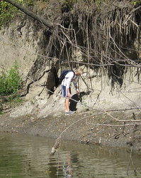 John Leaf '09 collecting sediment from a bluff along the LeSueur River in 2008.